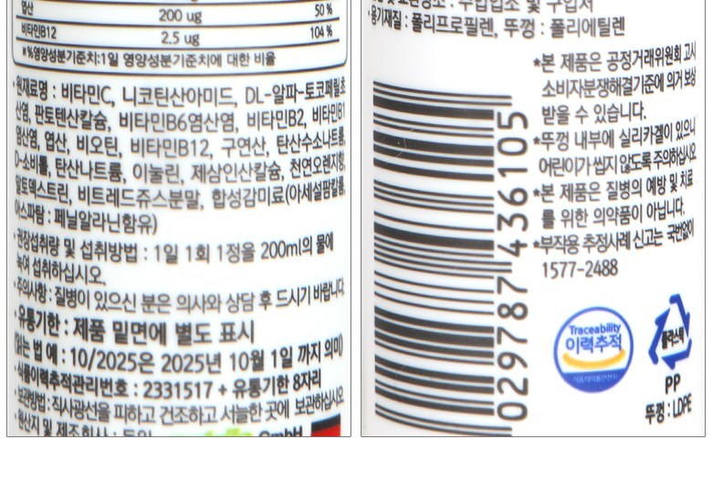 - 개당 용량/중량/정: 20정