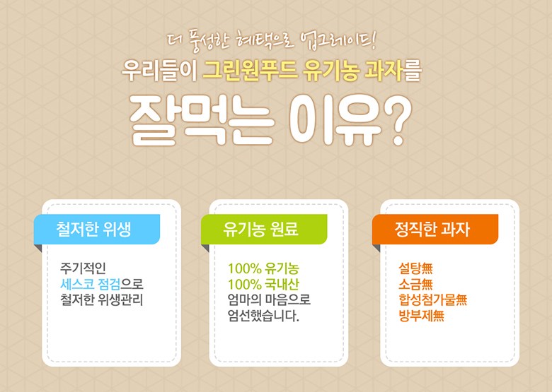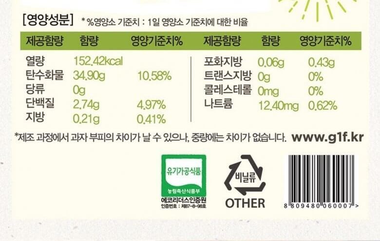 | 생산자 및 소재지 | 그린원푸드/경기도 하남시 검단산로 333번길 34 | 제조연월일, 소비기한 또는 품질유지기한 | 업데이트 예정 |