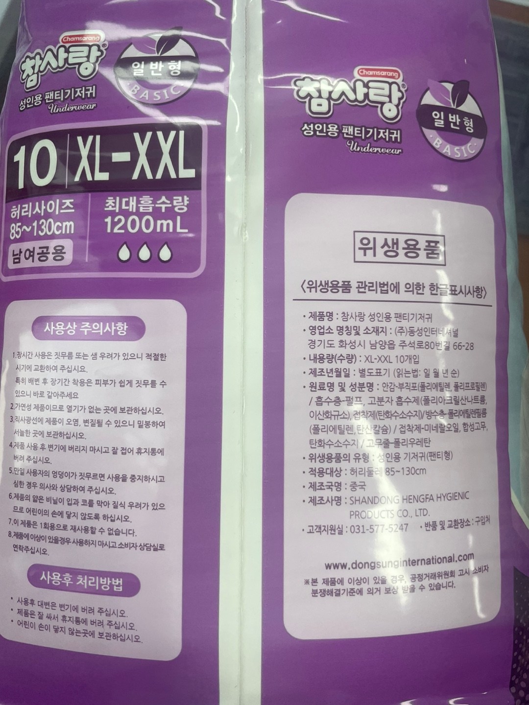 | 품명 및 모델명 | 참사랑 성인용 팬티기저귀 | 인증/허가 사항 | 위생용품 |