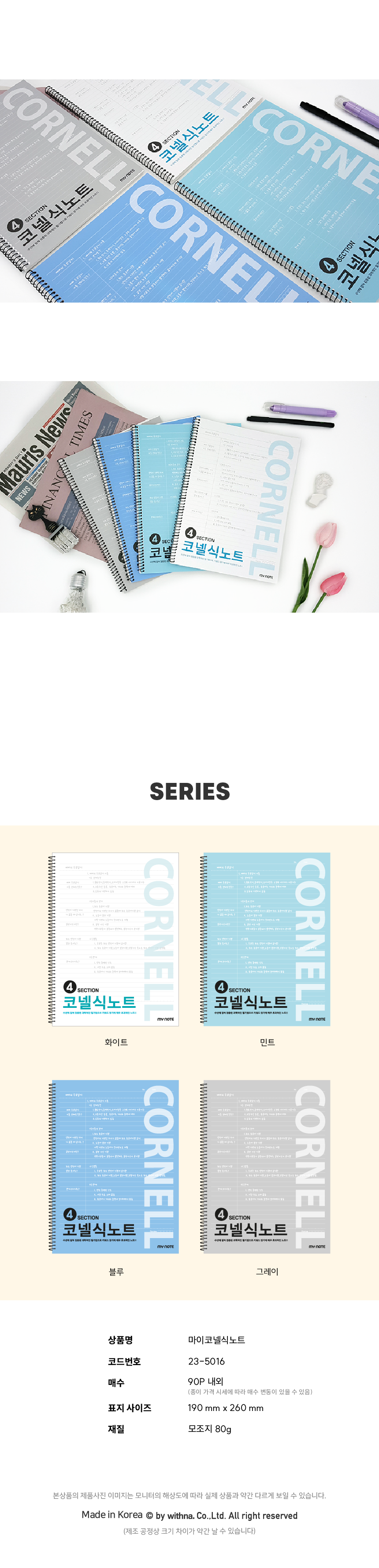 | 품명 및 모델명 | 더오픈하우스 코넬식노트 23-5016 | 인증/허가 사항 | 해당 없음 (14세 이상) |
