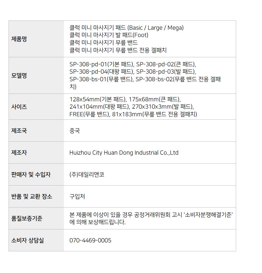 | 품명 및 모델명 | 클럭 미니 마사지기 기본패드 | 인증/허가 사항 | 해당없음 |