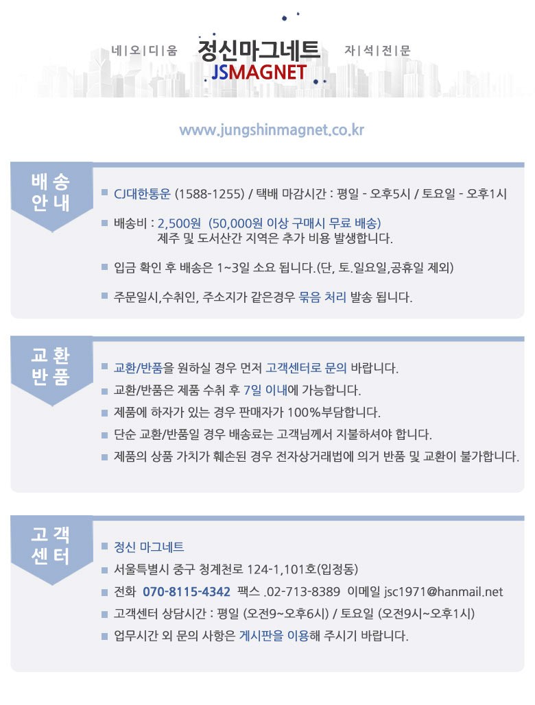 | 제조국(원산지) | 중국 | 제조자(수입자) | 정신마그네트 |