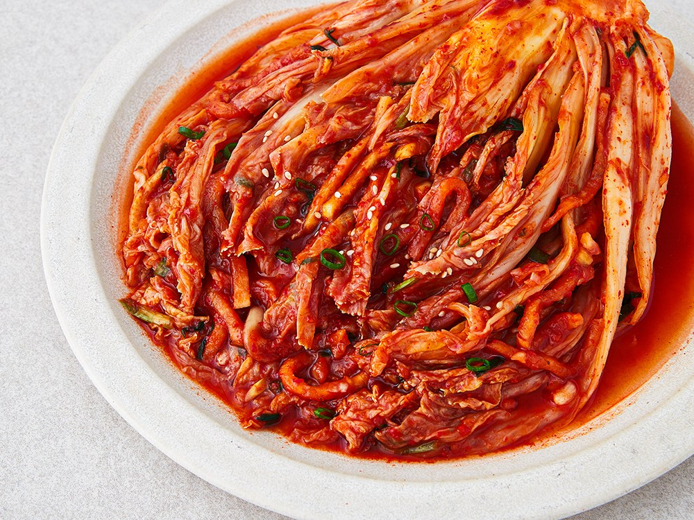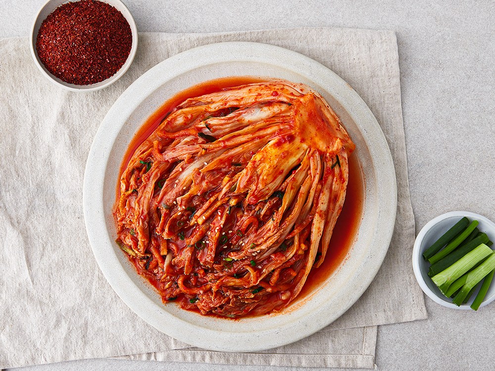 매콤하면서 시원한 감칠맛을 자랑하는 포기김치예요. 특유의 아삭아삭한 식감이 일품인데요. 잘 절인 배추에 고춧가루, 멸치액젓, 마늘 등을 더해 속을 채웠죠. 재료를 손질하고 김치 양념을 만들 필요가 없어 간편하답니다. 먹기 좋게 썰어 식탁 위에 올리면 밥 한 공기는 금세 비우게 될 거예요.