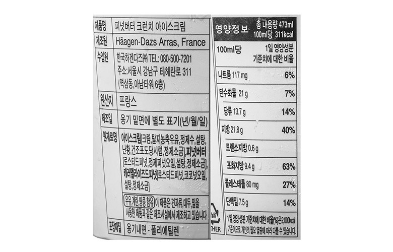 | 제품명 | 피넛버터 크런치 아이스크림 | 식품의 유형 | 아이스크림 |
