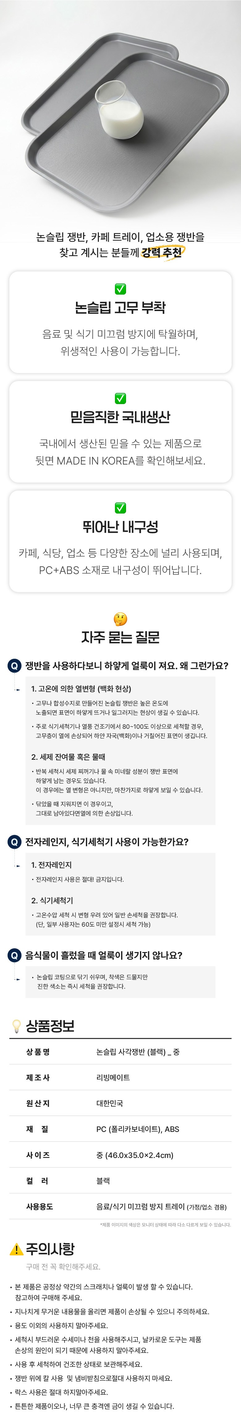 | 품명 및 모델명 | 리빙메이트 논슬립 직사각 트레이 쟁반 블랙 중 2개 | 재질 | 컨텐츠 참조 |