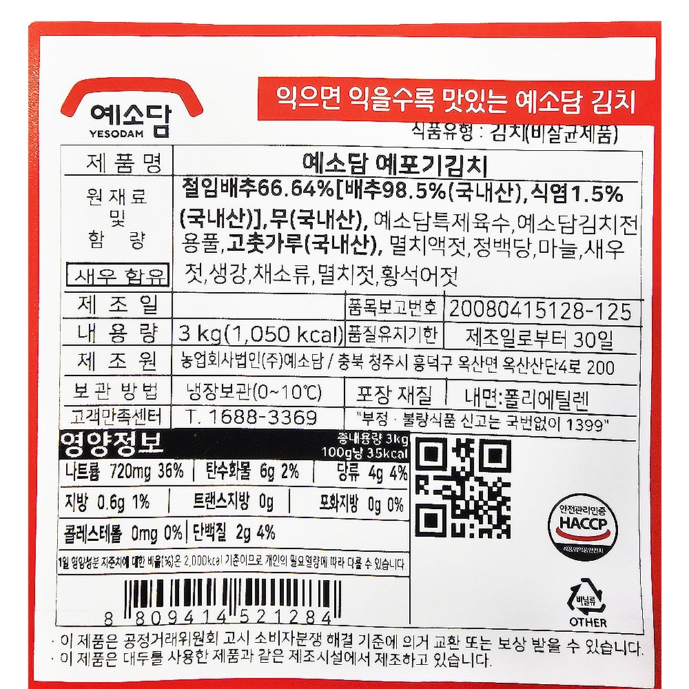 시원하고 아삭아삭한 식감의 김치를 소개할게요. 절임배추에 매콤한 양념을 더해 정성껏 담갔어요. 밥반찬으로 그대로 즐겨도 좋고, 들기름과 볶아 고소한 볶음 반찬으로 드셔도 좋답니다. 입맛 돋우는 칼칼한 맛의 배추김치로 풍성한 밥상을 만들어 보세요.