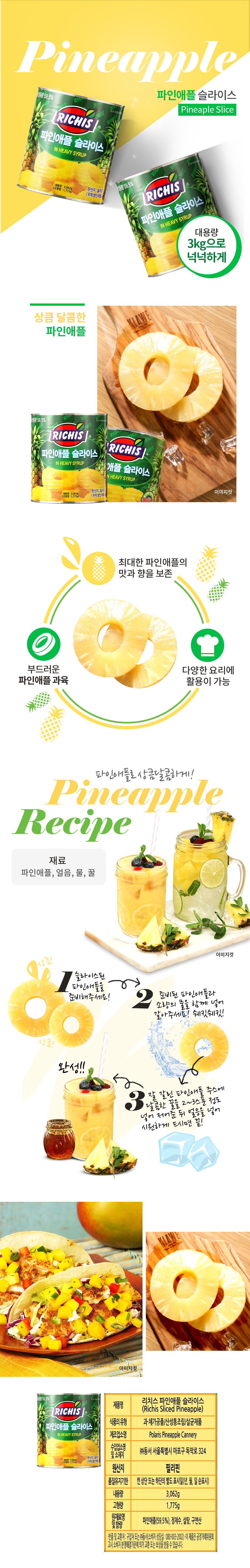| 제품명 | 파인애플슬라이스 | 식품의 유형 | 통조림 |