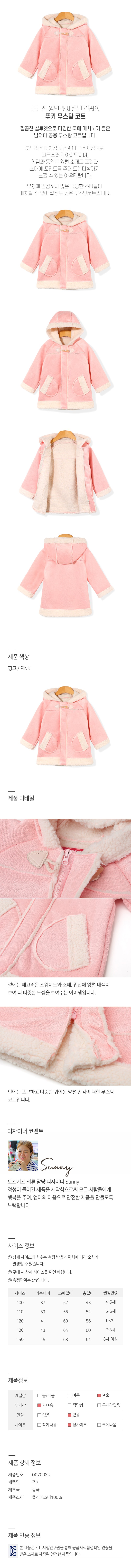 | 품명 및 모델명 | 오즈키즈 푸키 여아 무스탕 코트 핑크 120 | KC 인증정보 | 어린이제품 공급자 유 |