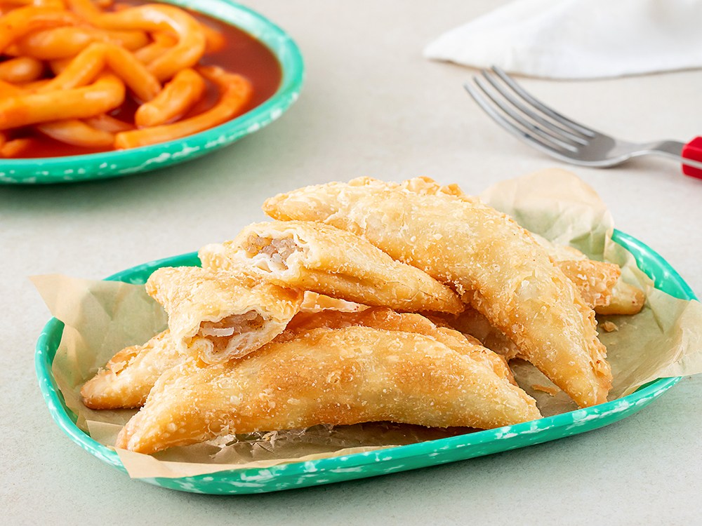 떡볶이에 곁들이면 본연의 매력을 더더욱 발산하는 튀김. 그 중에서도 떡볶이와 잘 어울리는 옛날 야끼만두 스타일의 잡채 튀김을 준비했어요. 국물이 자박한 떡볶이에 넣어 드셔보세요. 고소하고 바삭한 만두 모양 튀김 속 당면을 가득 채워, 국물에 푹 담그면 튀김이 양념을 쏙 머금어 더욱 맛있어요. 튀김을 그대로 간장에 콕 찍어 먹어도 고소하답니다.