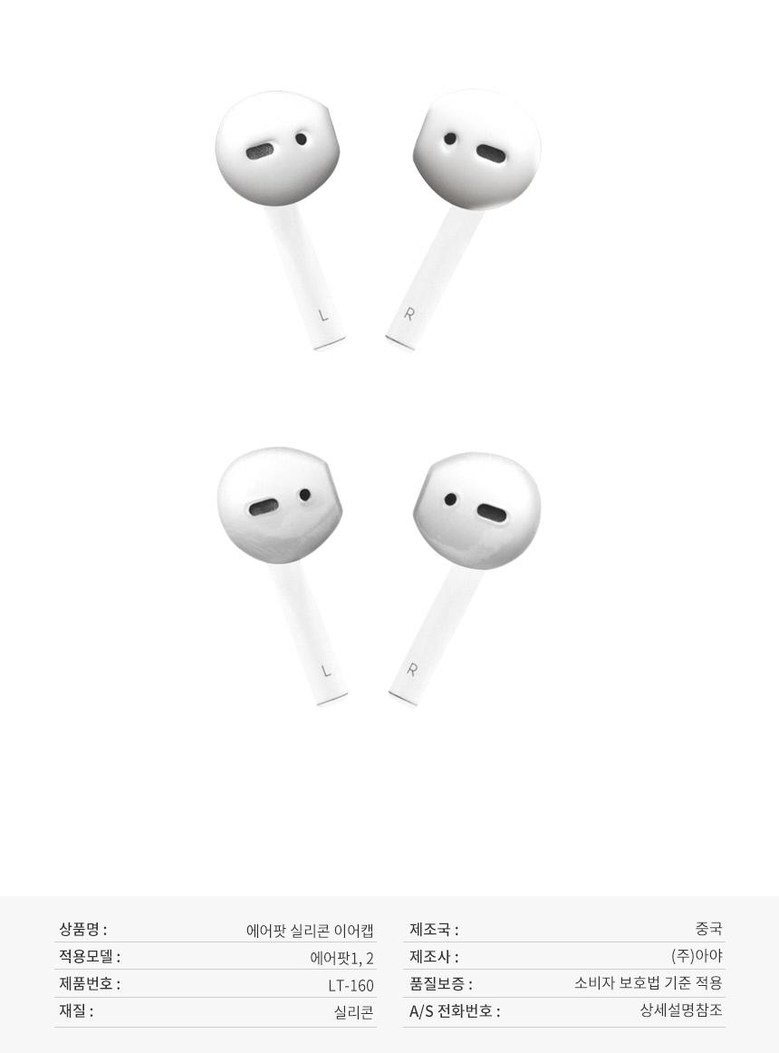 | 품명 및 모델명 | 에어팟 실리콘 슬립형 이어캡 에어팟 슬리브 | 인증/허가 사항 | 상품 상세페이지 참조 |