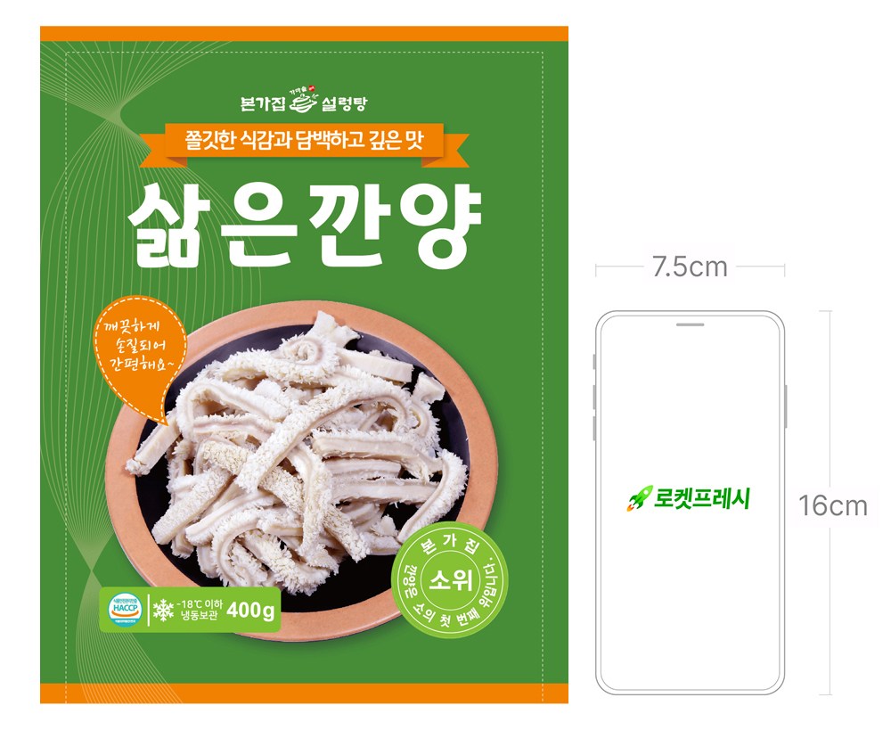 소의 첫 번째 위를 일컫는 양을 집에서 간편하게 만나보세요. 깨끗하게 손질한 뒤 알맞게 삶아내어 집에서도 번거로운 과정 없이 요리하실 수 있는데요. 씹으면 씹을수록 배어 나오는 고소한 감칠맛이 매력적이죠. 탱글탱글하면서도 쫄깃한 식감으로 입맛을 사로잡는답니다. 얼큰한 육개장이나 매콤달콤한 볶음으로 조리해 근사한 한 상을 차리셔도 좋아요.