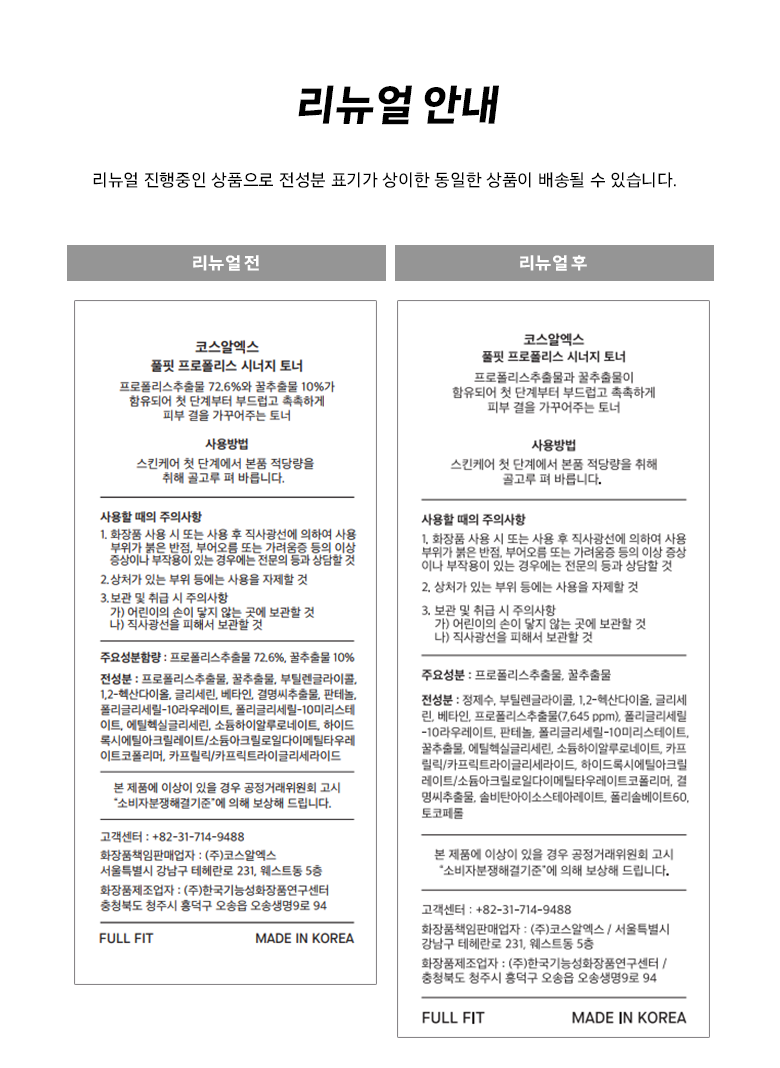 | 화장품제조업자, 화장품책임판매업자 및 맞춤형화장품판매업자 | 컨텐츠 참조 | 제조국 | 대한민국 |