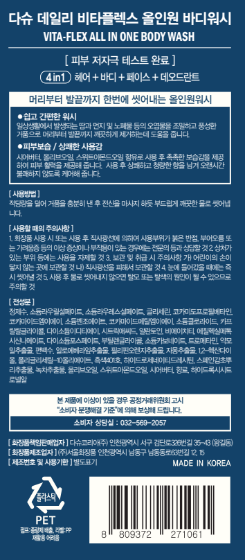| 화장품제조업자, 화장품책임판매업자 및 맞춤형화장품판매업자 | (주)서울화장품 / 다슈코리아(주) | 제조국 | 한국 |