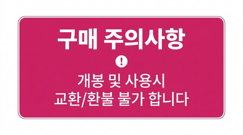 | 교환/반품 신청 기준일 | ㆍ단순변심에 의한 교환/반품은 제품 수령 후 7일 이내까지, 교환/반품 제한사항에 해당하지 않는 경우에만 가능 (배송비용과 교환/반품 비용 왕복배송비 고객부담) ㆍ상품의 내용이 표시·광고의 내용과 다른 경우에는 상품을 수령한 날부터 3개월 이내, 그 사실을 안 날 또는 알 수 있었던 날부터 |