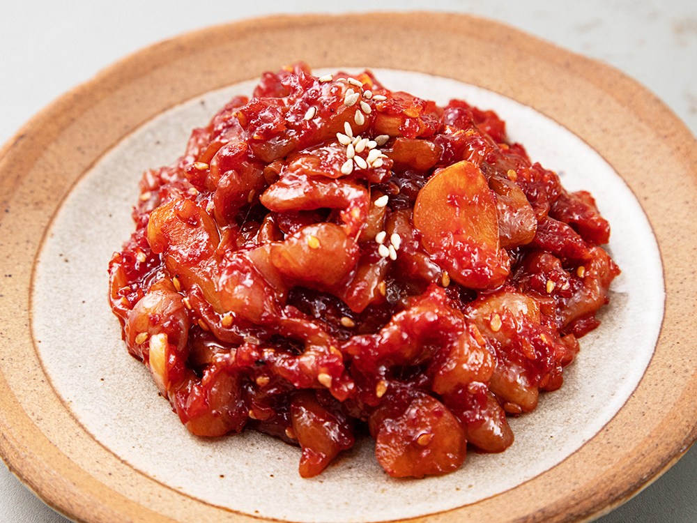 오동통하고 신선한 창란을 엄선한 후, 고춧가루와 마늘 등을 더해 맛깔스럽게 만든 강경신안상회 창란젓을 만나보세요. 매콤한 풍미로 입맛을 돋우는 창란젓은 부드러운 식감으로 언제나 좋은 반찬이 되어주는데요. 창란젓 그대로 밥반찬으로 먹어도 좋고, 양념장을 만들어 비빔밥에 곁들여도 별미가 돼요. 매콤하면서도 달착지근한 비법 양념이 입에 착 감기는 감칠맛을 선사한답니다. 씹는 맛이 있는 식감과 양념의 맛있는 조화를 즐겨보세요.