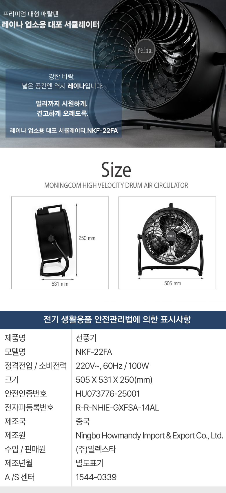 | 품명 및 모델명 | 선풍기 / NKF-22FA | KC 인증정보 | HU073776-25001 |