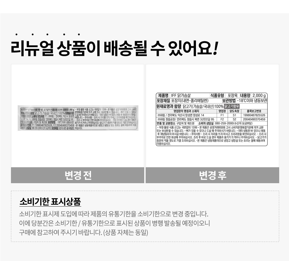 | 제조연월일, 소비기한 또는 품질유지기한 | 소비기한(또는 유통기한) : 2027년 06월 07일 이거나 그 이후인 상품 제조년월일 : 2025년 12월 08일 이후인 제조상품 | 세부 품목군별 표시사항 | 축산물 등급표시 : 해당 없음 / 이력번호 표시유무 : 이력번호 표시제품임 |