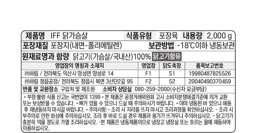 하림 IFF 닭가슴살을 만나보세요. 신선한 상태 그대로 -35℃ 이하의 온도로 급속 동결하여 맛이 그대로 살아있어요. 서로 붙지 않고 한 덩어리씩 쉽게 떼어져 필요한 만큼 사용하기 좋지요.