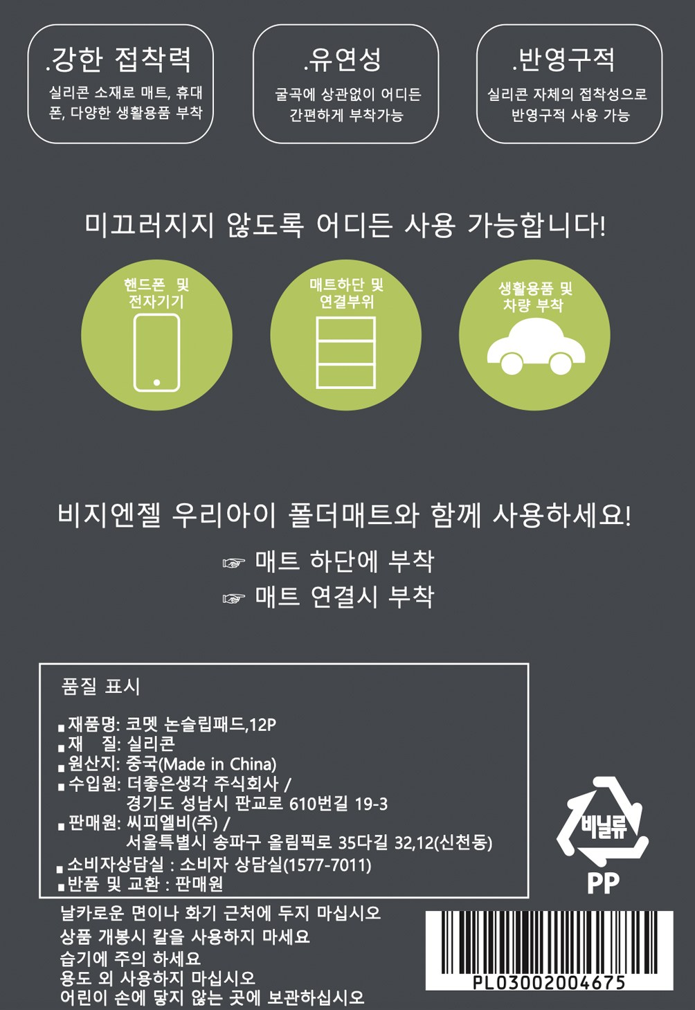 | 품명 및 모델명 | 코멧 논슬립 패드, 12p | 인증/허가 사항 | 해당없음 |