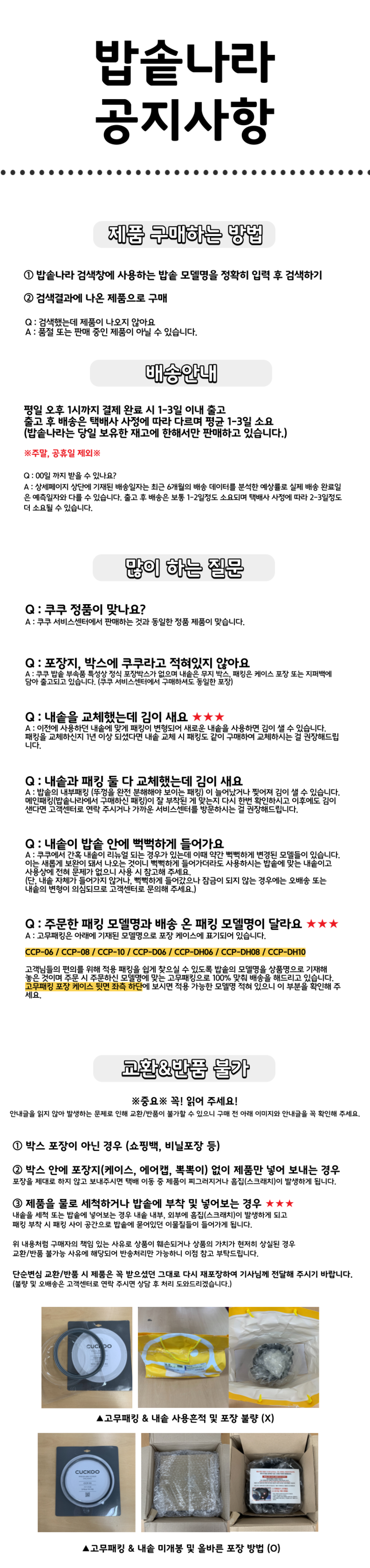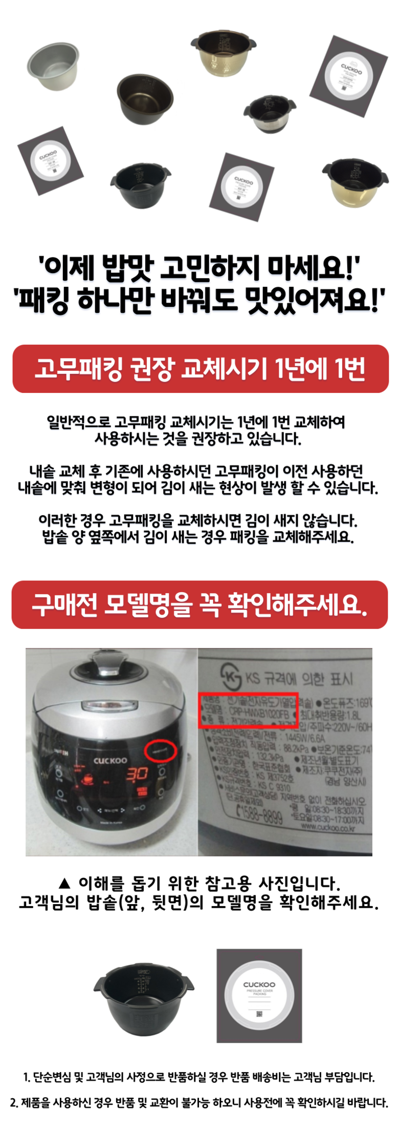 | 구성품 | 내솥 / 고무패킹 | 크기 | 상품 상세페이지 참조 |