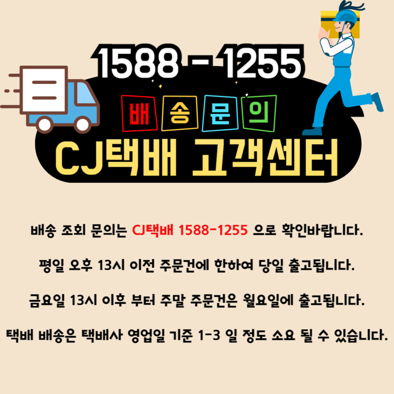| 배송기간 | ㆍ도서산간 지역 등은 배송에 3-5일이 더 소요될 수 있습니다. - 천재지변, 물량 수급 변동 등 예외적인 사유 발생 시, 다소 지연될 수 있는 점 양해 부탁드립니다. | ||