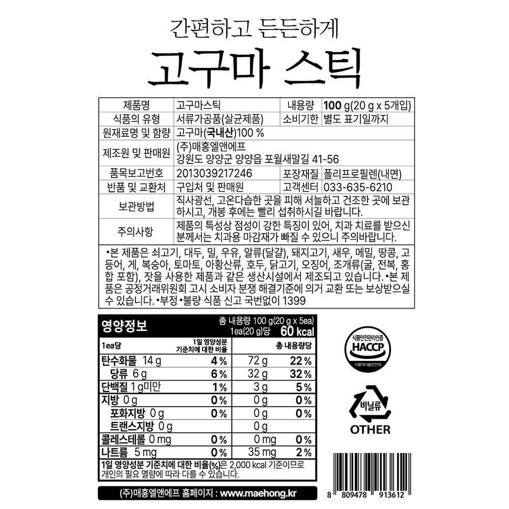 - 가공구분: 고구마말랭이