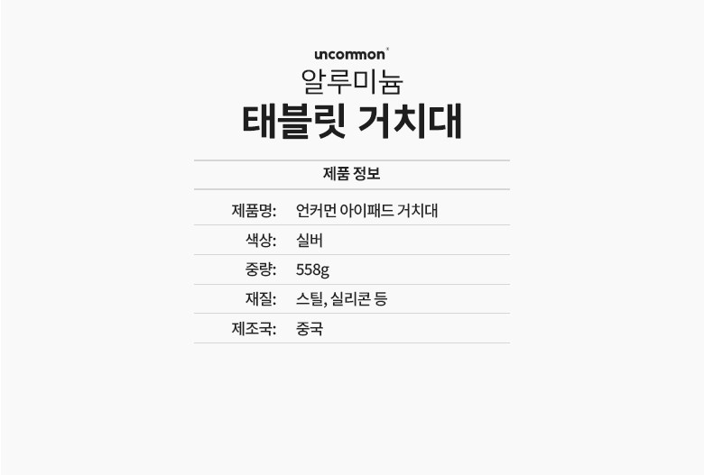 | 품명 및 모델명 | 언커먼 태블릿 스탠드 거치대 | 인증/허가 사항 | 해당없음 |