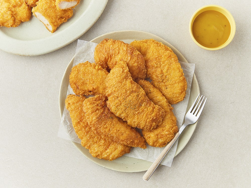 두툼한 닭 안심으로 만든 텐더스틱이에요. 에어프라이어나 전자레인지로 간단히 조리하면, 바삭바삭한 식감을 맛볼 수 있답니다. 밥반찬으로 드셔도 좋고, 칠리소스나 허니머스타드소스를 곁들여 즐겨도 좋아요.