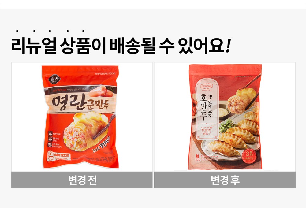 | 제품명 | 호만두 명란왕교자 | 식품의 유형 | 만두(가열하여 섭취하는 냉동식품) |