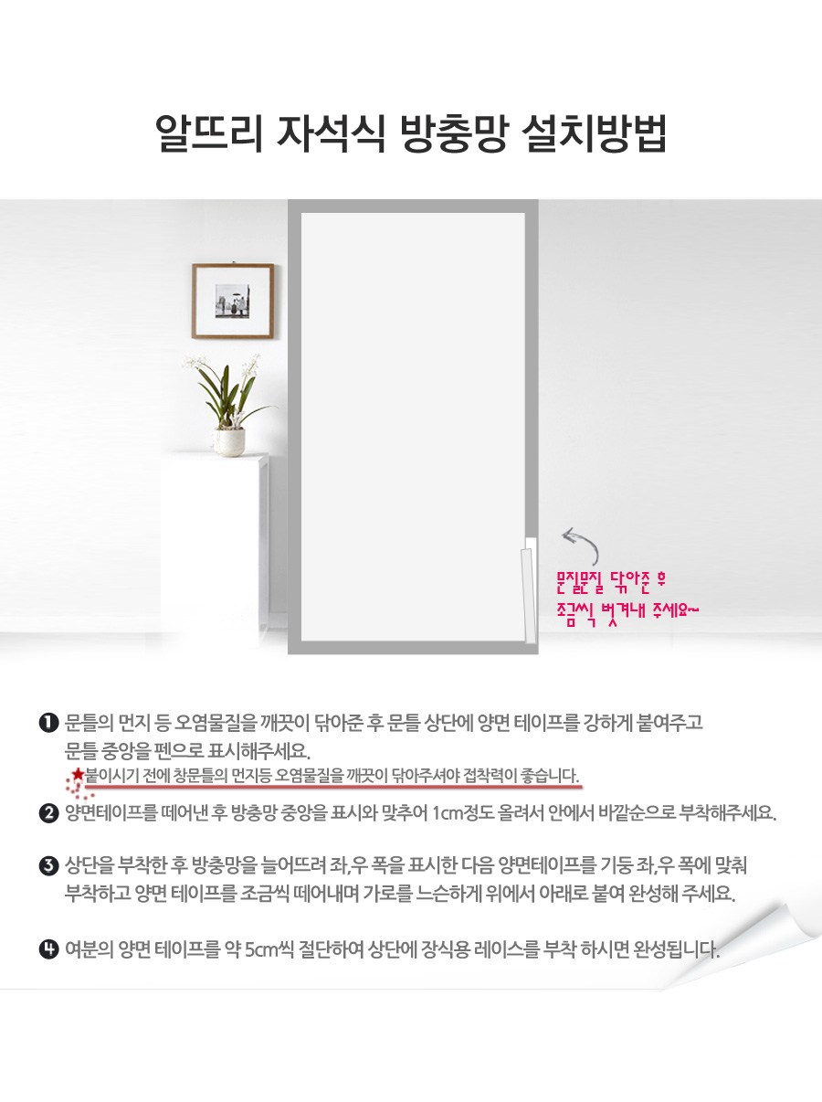 - 자석 식으로 빈틈 없이 벌레의 유입을 차단