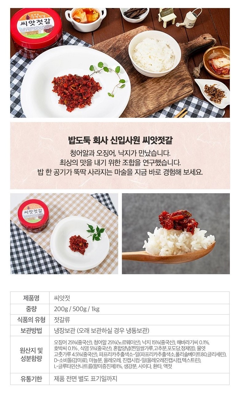 | 제품명 | 상품 상세페이지 참조 | 식품의 유형 | 젓갈류 |