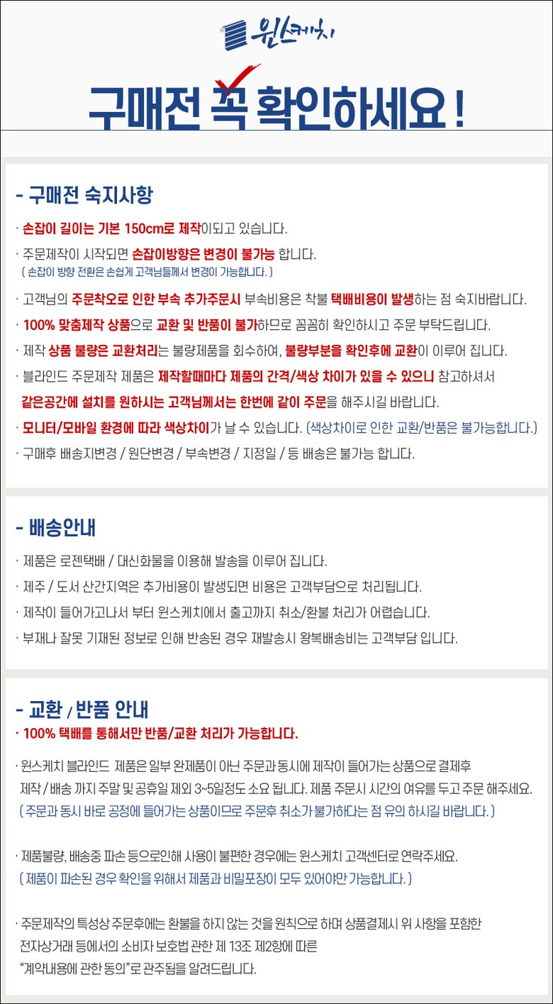 - ㆍ교환/반품에 관한 일반적인 사항은 판매자가 제시사항보다 관계법령이 우선합니다.