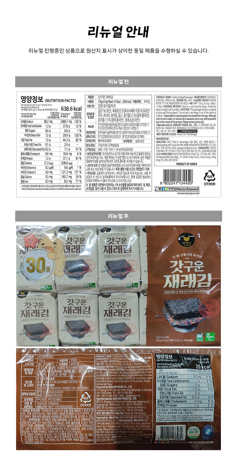 | 제품명 | 컨텐츠 참조 | 식품의 유형 | 조미김 |