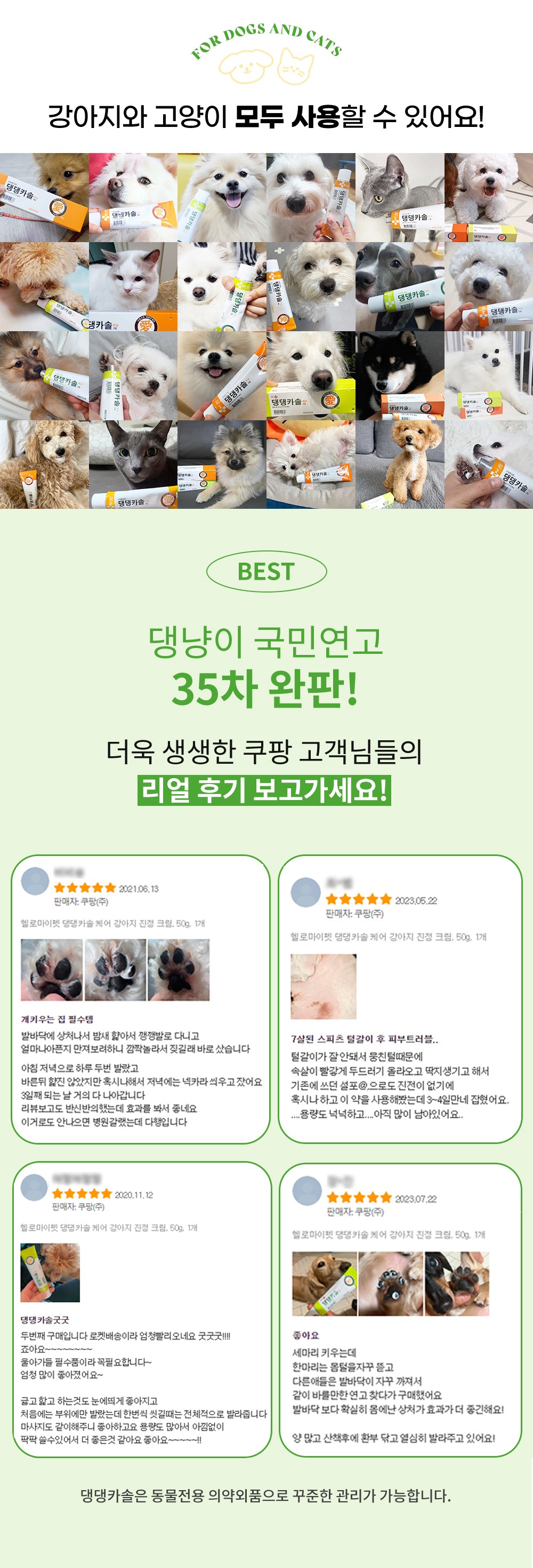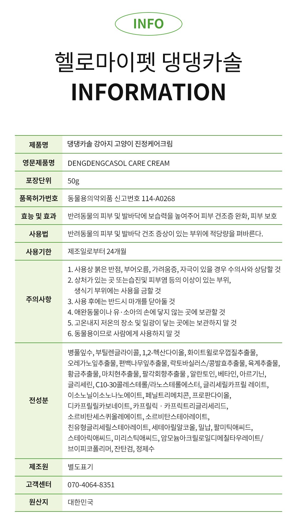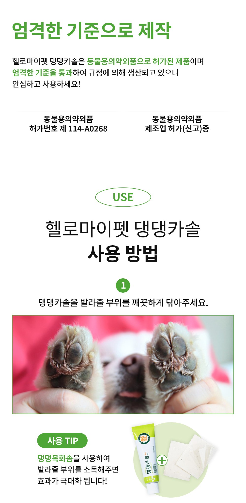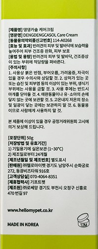 | 품명 및 모델명 | 댕댕카솔 케어크림 | 인증/허가 사항 | 동물용 의약외품 |