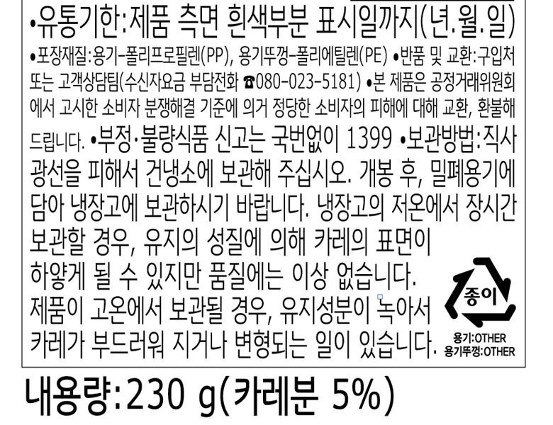 | 제조연월일, 소비기한 또는 품질유지기한 | 소비기한(또는 유통기한) : 2026년 06월 02일 이거나 그 이후인 상품<br />제조년월일 : 2024년 12월 10일 이후인 제조상품 | 포장단위별 내용물의 용량(중량), 수량 | 230g x 3개 |