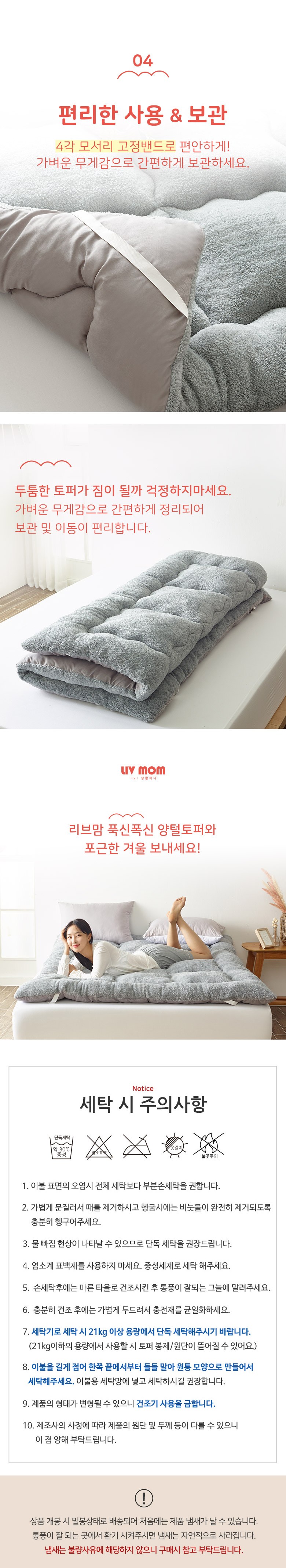 - ㆍ모니터 해상도의 차이로 인해 색상이나 이미지가 실제와 달라, 고객이 단순 변심으로 교환/반품을 무료로 요청하는 경우
