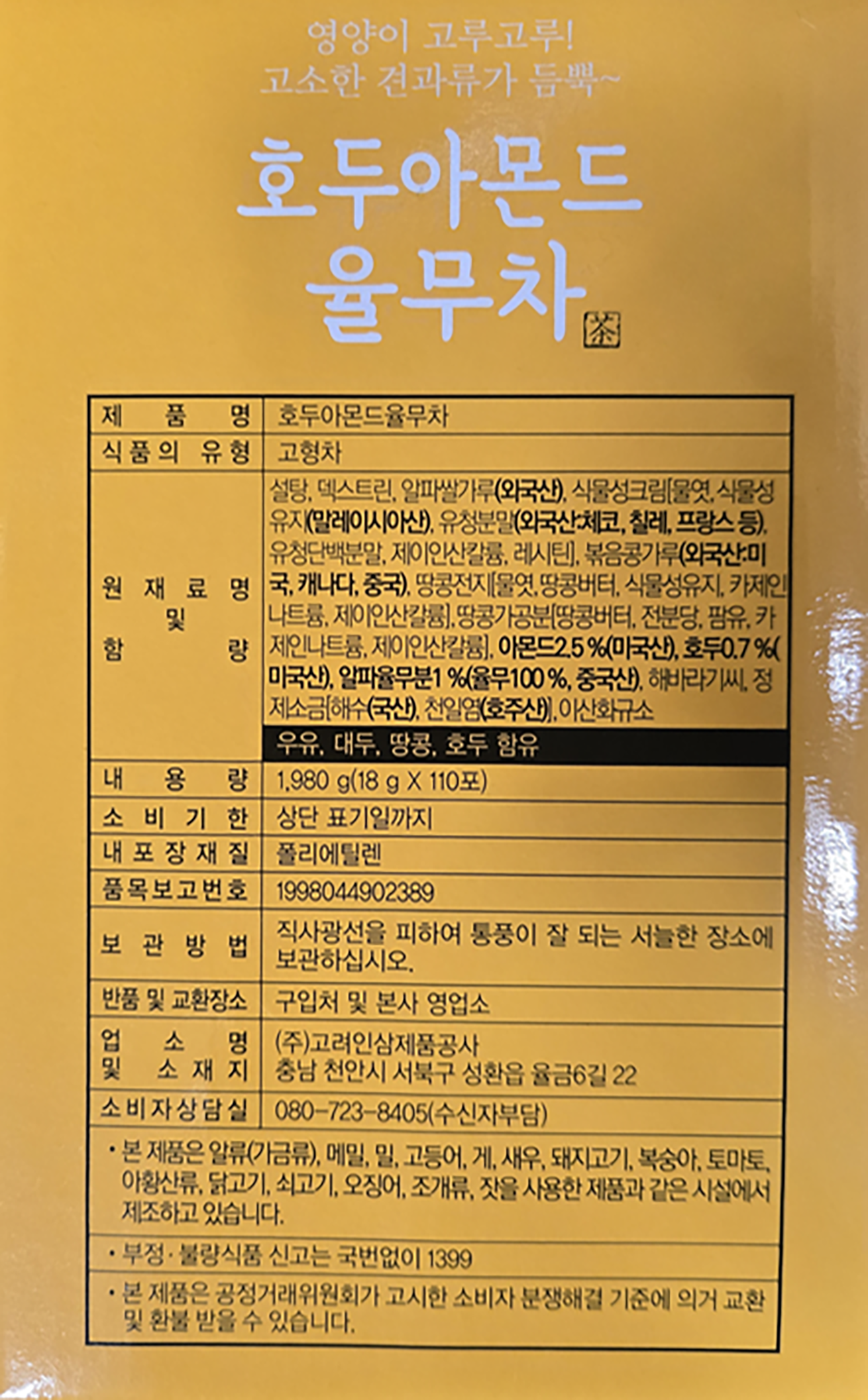| 제품명 | 컨텐츠 참조 | 식품의 유형 | 컨텐츠 참조 |