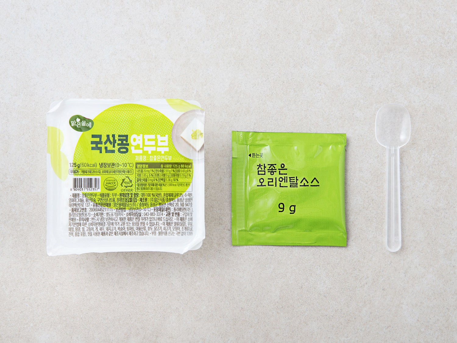 연두부, 오리엔탈소스, 스푼 각 6개로 구성되어 있습니다.