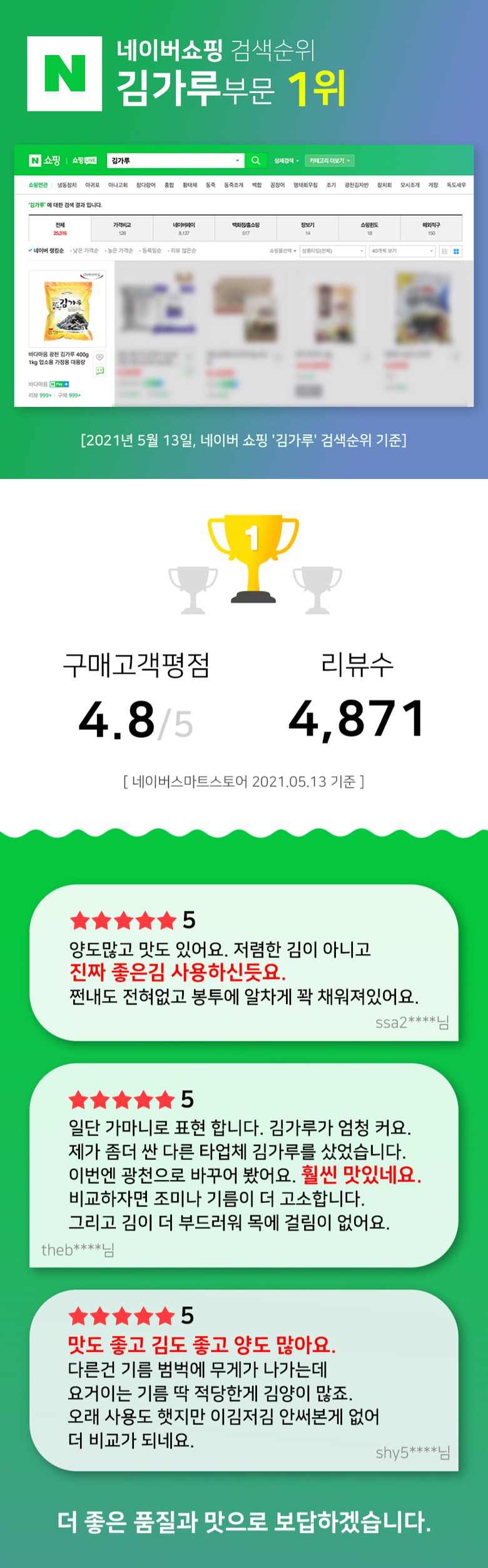 동일한 상품에 대해 작성된 상품 리뷰로, 판매자는 다를 수 있습니다.