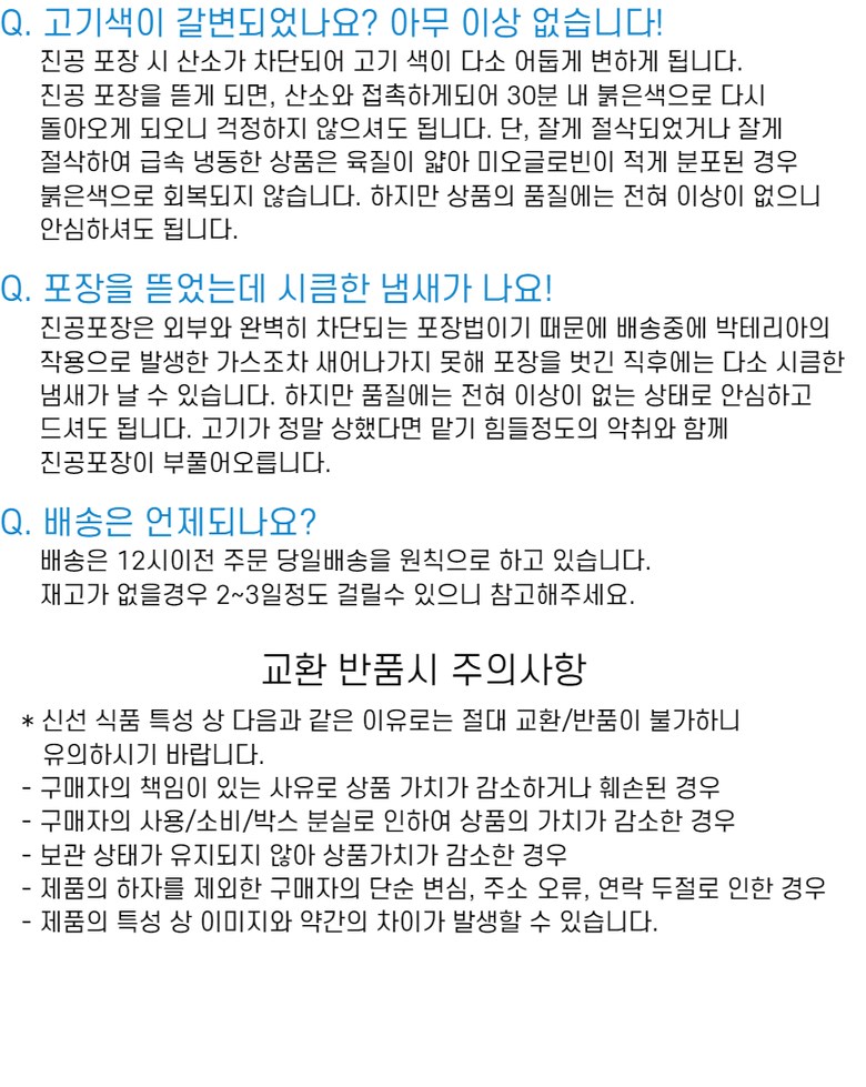 - ㆍ모니터 해상도의 차이로 인해 색상이나 이미지가 실제와 달라, 고객이 단순 변심으로 교환/반품을 무료로 요청하는 경우