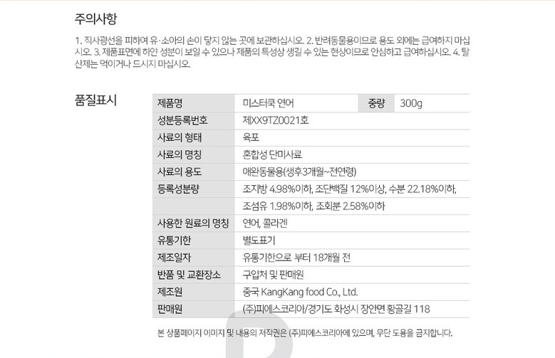 | 제조연월일, 소비기한 또는 품질유지기한 | 상품 상세페이지 참조 | 세부 품목군별 표시사항 | 상품 상세페이지 참조 |