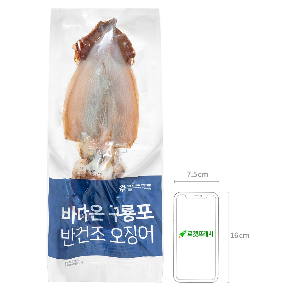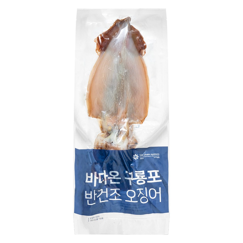 정성껏 말린 오징어를 만나보세요. 완전히 건조하지 않은 반건조 오징어로 특유의 감칠맛과 촉촉하면서도 쫄깃쫄깃한 식감이 살아 있답니다. 찬물에 담가 해동한 뒤 간편하게 요리해보세요.