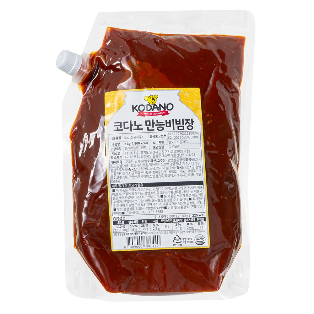 | 제품명 | 코다노 만능비빔장 | 식품의 유형 | 컨텐츠 참조 |