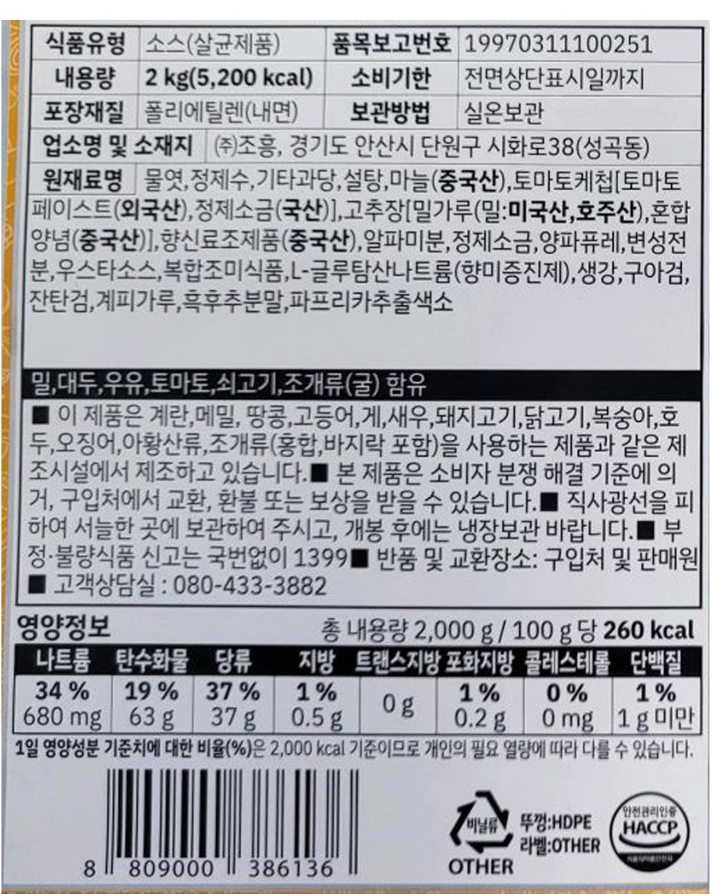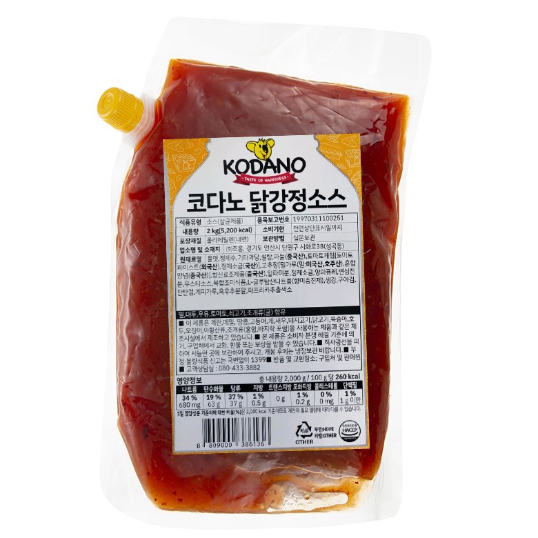 | 제품명 | 코다노닭강정소스 | 식품의 유형 | 컨텐츠 참조 |