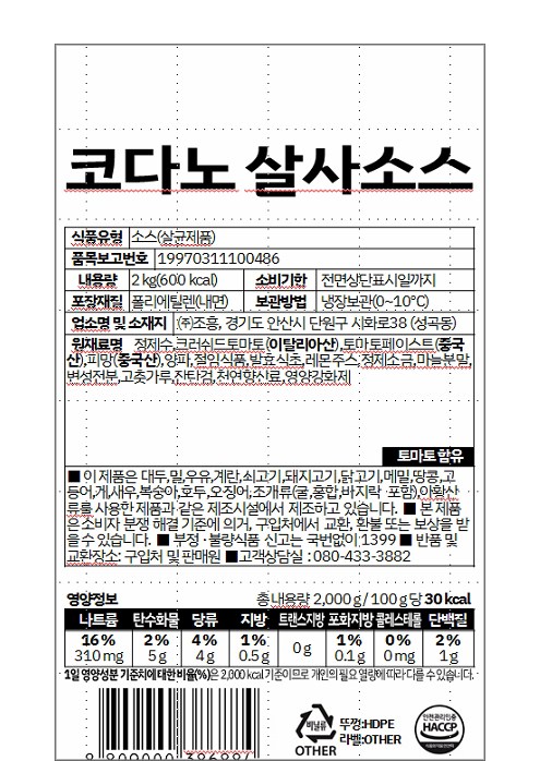 | 제품명 | 코다노 살사소스 | 식품의 유형 | 소스(살균제품) |