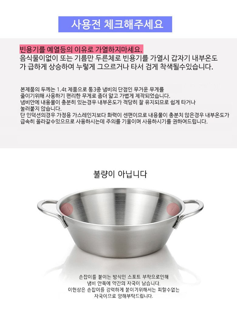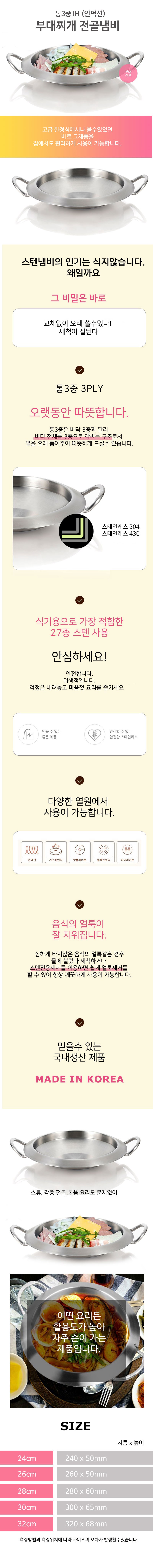 | 품명 및 모델명 | 업소용 통3중 인덕션 가능 스텐 부대찌개 전골냄비 24cm | 재질 | 스테인레스 |