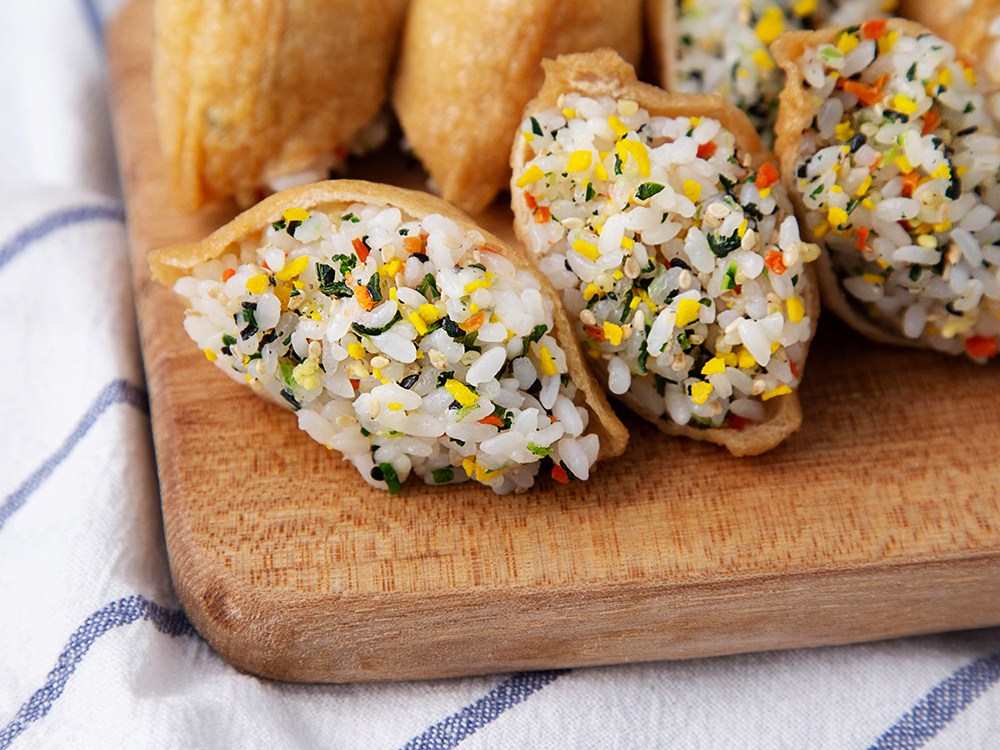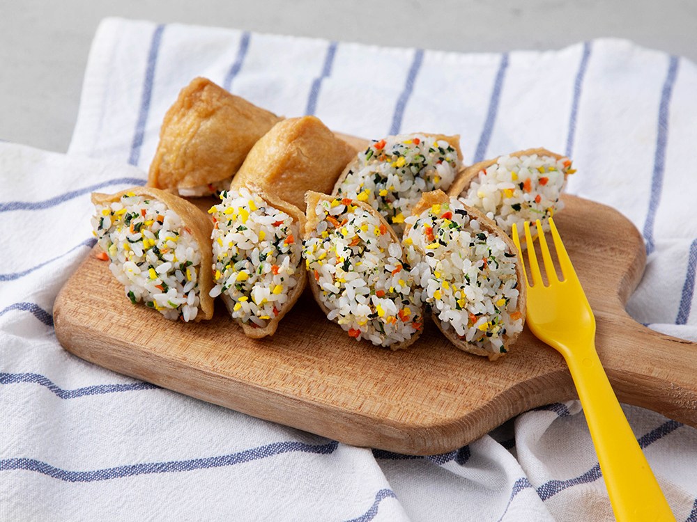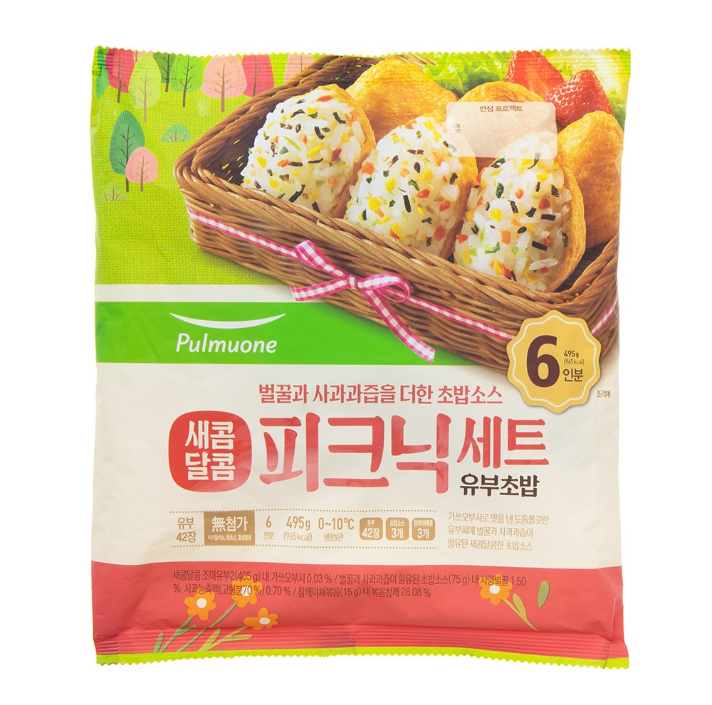 씹는 식감이 살아있는 새콤달콤 피크닉세트 유부초밥을 소개할게요. 도톰, 쫄깃한 유부피에 벌꿀과 사과농축액 등으로 맛을 낸 소스, 알록달록 참깨 야채 볶음을 섞은 밥을 넣으면 금세 맛 좋은 유부초밥이 완성된답니다.