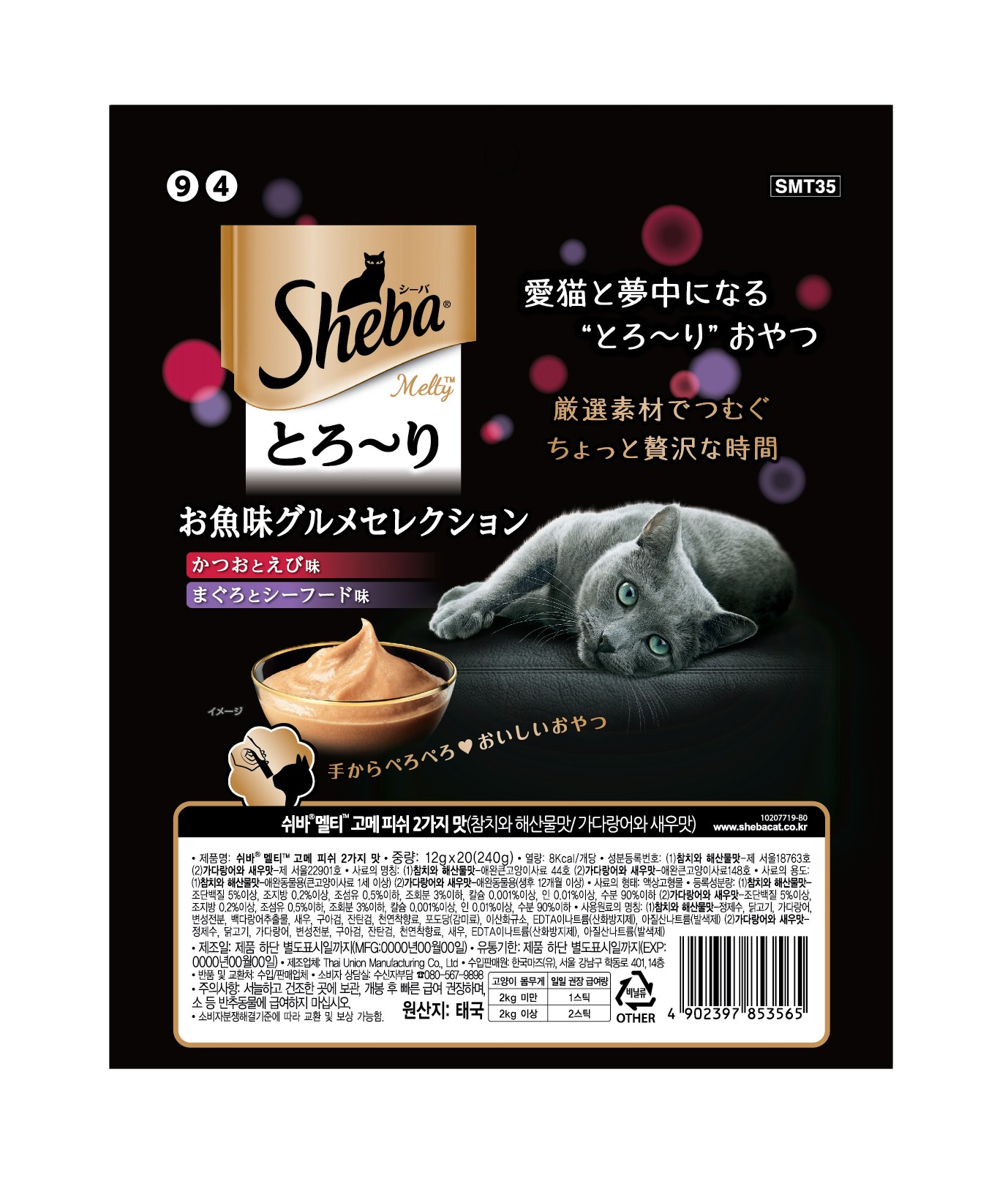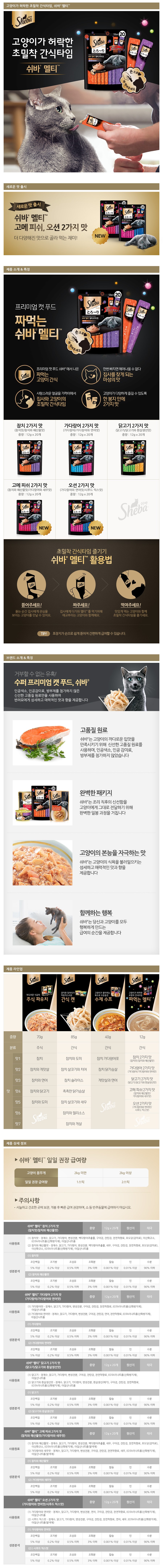 | 품명 및 모델명 | 쉬바 멜티 고양이 파우치 간식 참치와 해산물 + 가다랑어와 새우 | 인증사항 | 해당없음 |