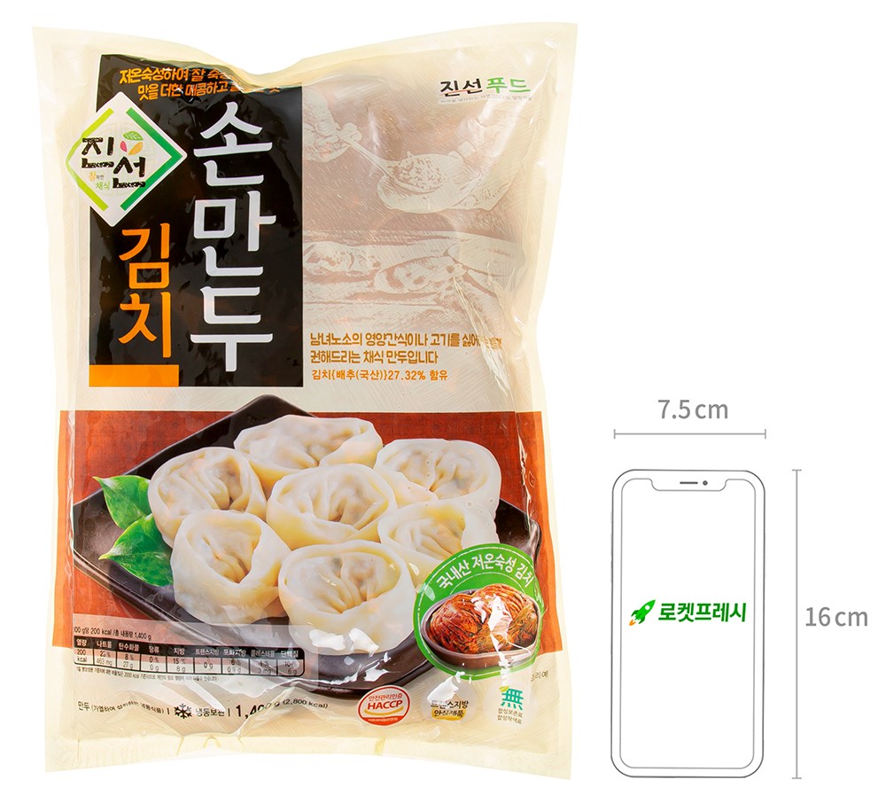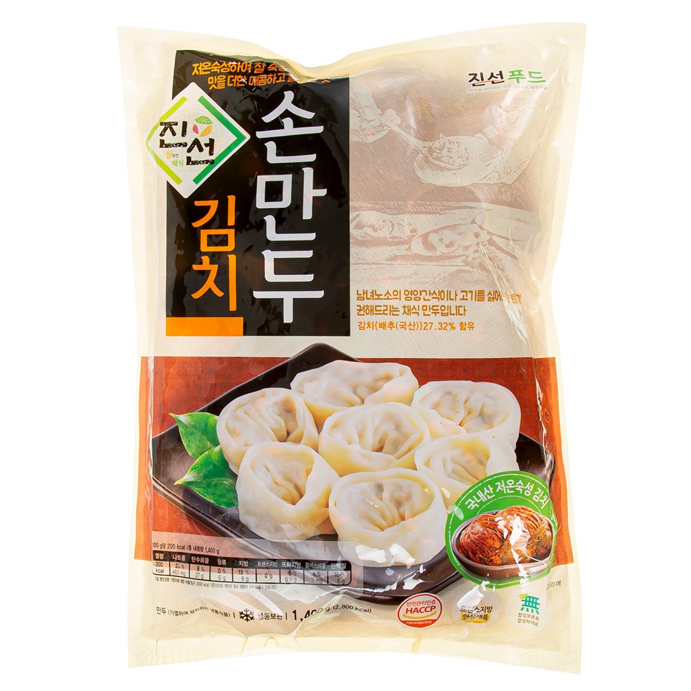 쫄깃쫄깃하고 촉촉한 만두피 속 김치, 부추, 무말랭이 등의 다양한 재료를 채워 칼칼하면서도 담백한 맛을 낸 진선의 김치 손만두를 소개합니다. 육류, 해산물 등 동물성 식품이 들어가지 않아 채식을 즐기시는 분이나 식단 관리를 하시는 분들도 부담 없이 드실 수 있는 만두이지요. 매콤하면서도 담백한 만두가 먹고 싶을 때 김치 손만두를 준비해보세요. 김치와 당면의 조화가 입안을 기분 좋게 감쌀 거예요.