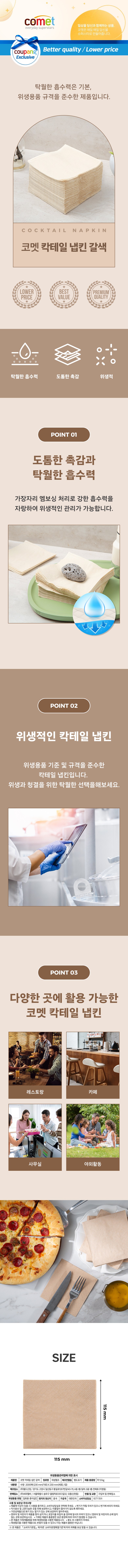 | 품명 및 모델명 | 코멧 칵테일 냅킨 갈색 2000개입 | 인증/허가 사항 | 위생용품 |